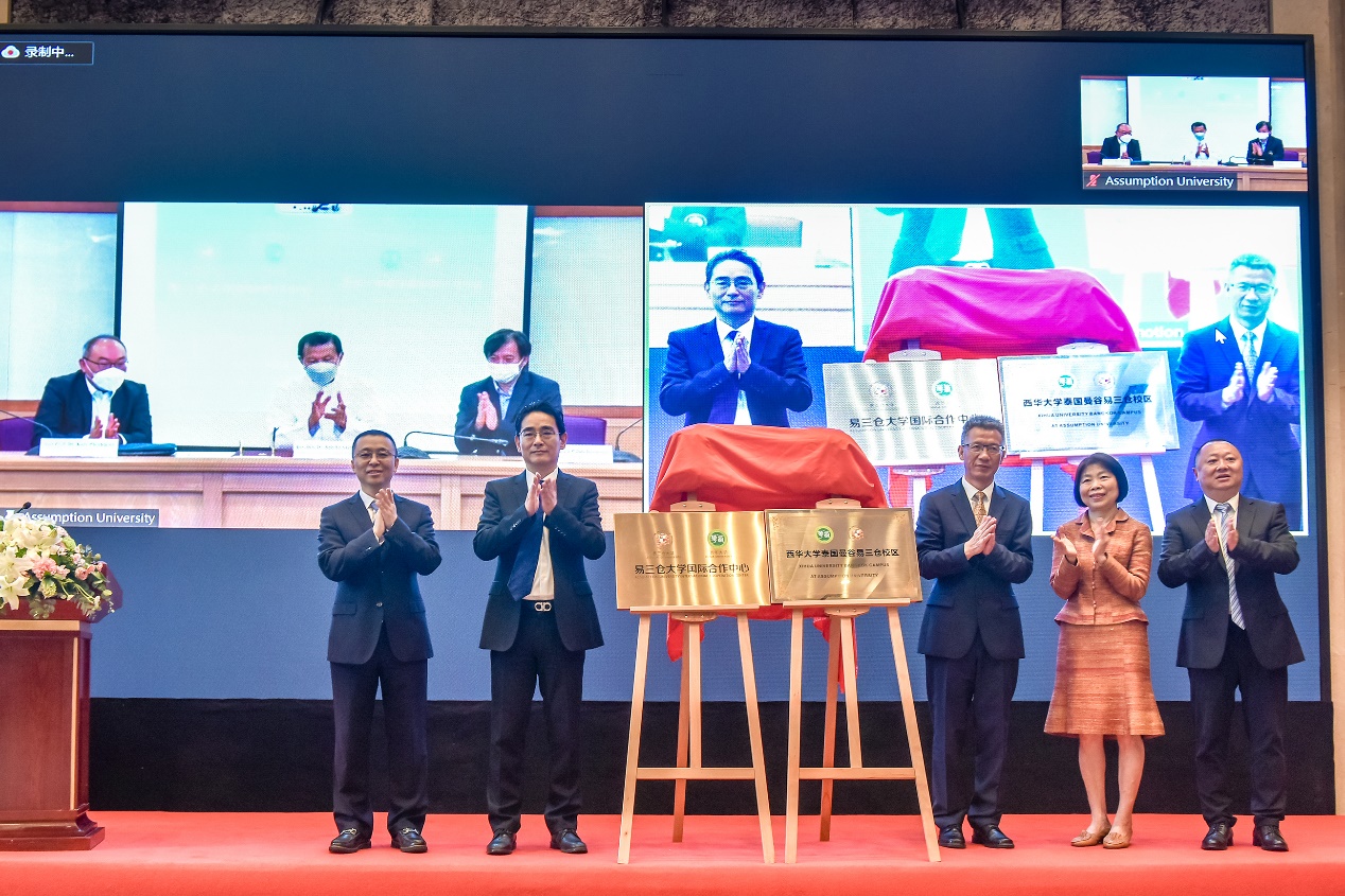 5月11日上午,西华大学与易三仓大学共建“西华大学泰国曼谷易三仓校区”签约暨揭牌仪式在成都祥宇宾馆顺利举行。西华大学校长刘树根教授、副校长费凌教授,泰国易三仓大学校长班查博士、副校长宋通博士和克迪博士(在线)出席了本次活动。本次两校海外校区签约暨揭牌仪式由泰王国驻成都总领事馆总领事张淑贞女士和成都市人民政府外事办公室副主任欧玉松先生共同见证。