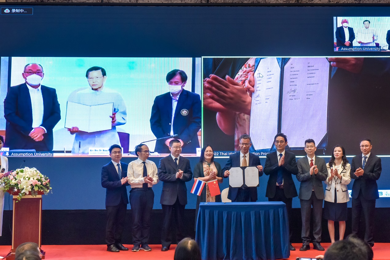 泰王国驻华大使馆科技处公使衔参赞陈善意女士在线参加此次活动并对两校的合作给予大力赞扬。今年是泰中建立全面战略合作伙伴关系10周年,泰王国驻华大使馆将全力推动泰国和四川省间的紧密合作,进一步深化泰中各领域合作。西华大学与易三仓大学共建海外校区,将有力推动泰中高校务实高效的交流与合作。随后泰王国驻成都总领事馆总领事张淑贞女士和成都市人民政府外事办公室欧玉松副主任分别在发言中对西华大学与易三仓大学的深度合作给予肯定,并对两校共建海外校区表示衷心的祝贺。