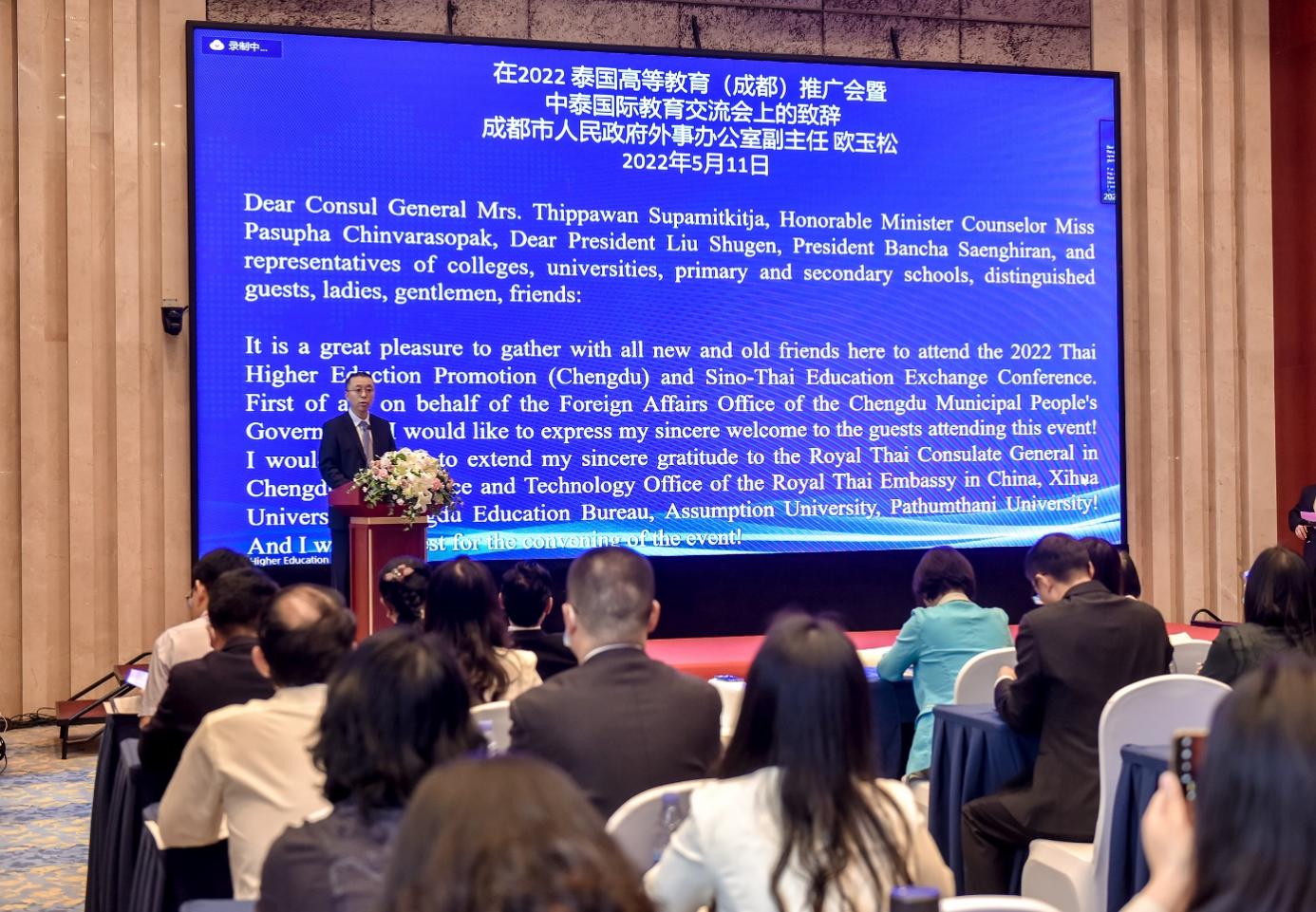 莅临本次活动的嘉宾还有来自泰国旅游局驻成都办事处、成都市教育局、成都市青羊区教育局、成都市成华区教育局的领导和代表,来自泰国9所高等院校的代表(在线)、来自四川12所高校和10所中学的代表,西华大学与易三仓大学代表以及关心中泰教育合作的社会各界朋友。