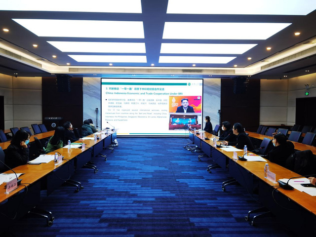 会上,费凌副校长代表学校对李鸽参赞一行表示欢迎,并介绍了我校与印度尼西亚三一一大学共建孔子学院的发展情况:我校与三一一大学共建的孔子学院为印度尼西亚的第七所孔子学院,中爪哇省与日惹地区的第一所孔子学院。我校孔院以国际中文教育为基石,积极推进中爪哇地区中文教育;打造特色孔院建设,在非遗文化中寻找契合点,推进巴蜀文化与印尼文化的交流碰撞,持续不断推进巴蜀-爪哇地方文化交流与研究;组织国际研讨会,不断推动“一带一路”背景下中印尼经贸合作交流。