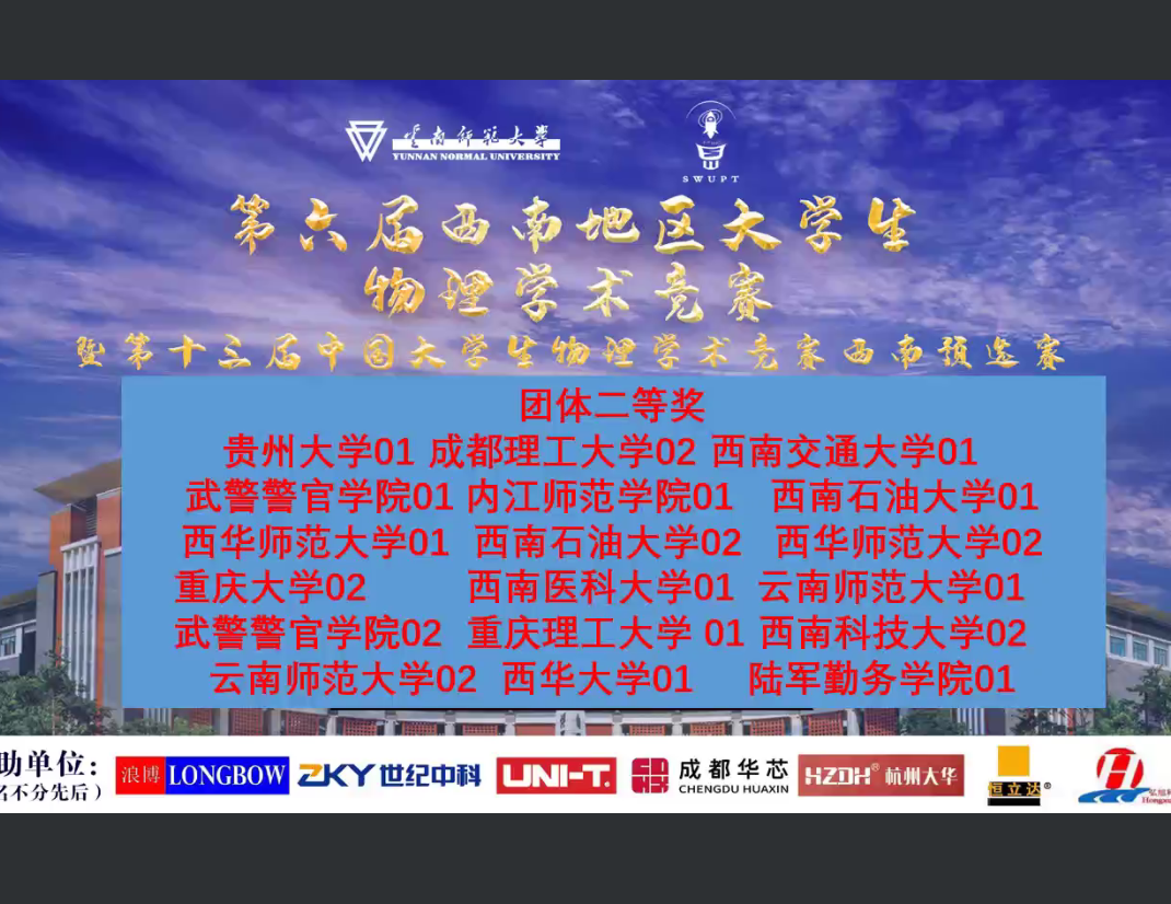 本次大赛由教育部高等学校物理学类专业教学指导委员会西南地区委员会,四川、重庆、贵州、云南四省、市物理学会主办,云南师范大学承办。共有来自西南地区26所高校的46支代表队,共计400余