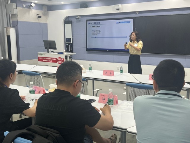 在比赛过程中,来自电子科技大学、西南交通大、西华大学、成都理工大学等四川省内12所高校的青年教师依次登台,围绕抽取到的实验题目展开讲解。评委老师们认真聆听,并提出问题,与参赛选手进行深入交流。