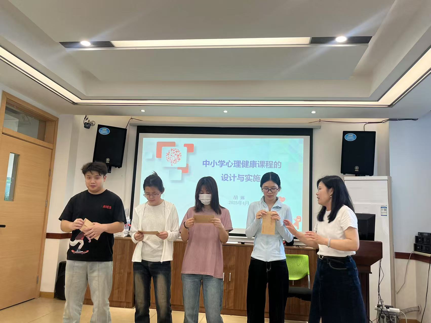 为让同学们更直观地感受心理学课程的独特性,胡老师邀请四位同学上台参与互动活动。每位同学从信封中抽取内容,结合自身经历分享对中小学心理课与学科化课程差异的理解。通过活动,同学们深刻体会到心理课更注重互动性、体验性和实用性,而非单纯的知识灌输。