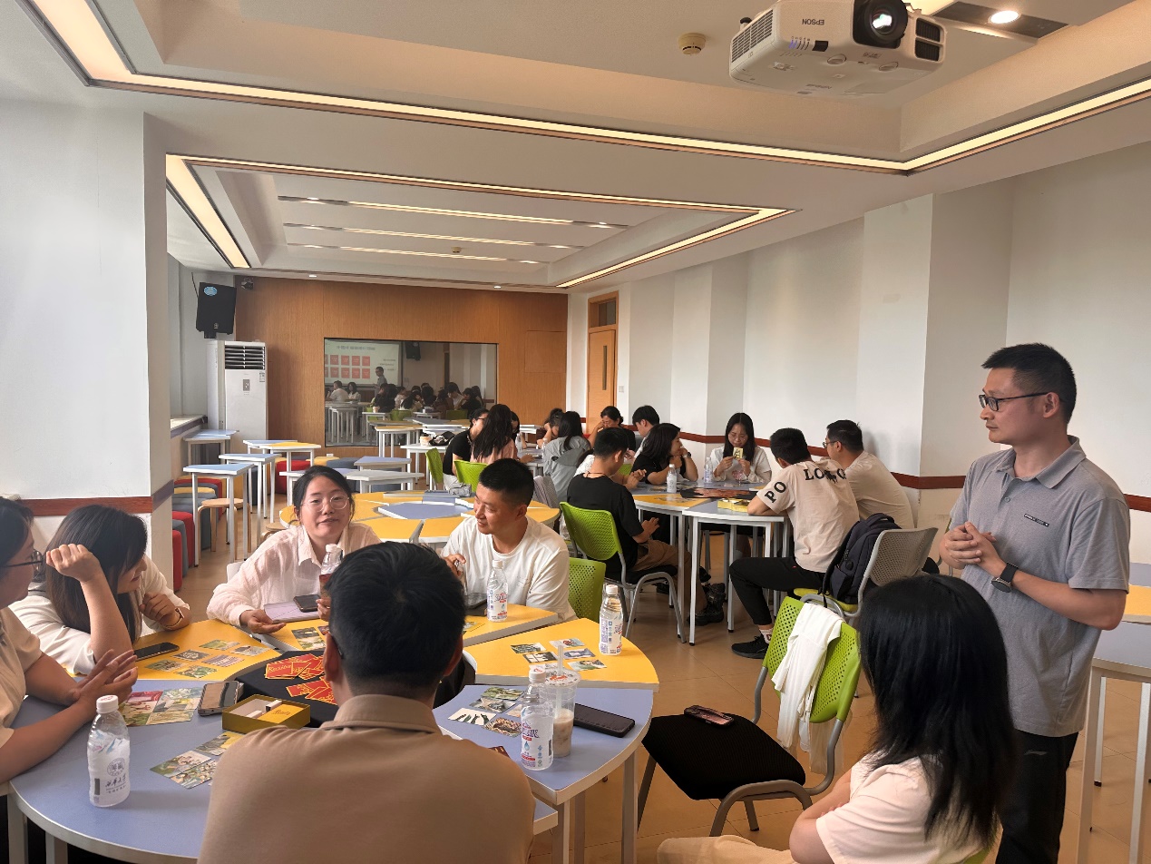 5月13日的OH卡团辅活动以“潜意识投射卡”为工具,引导辅导员在图像联想中梳理压力源、寻找心理资源。张涛老师首先通过“抓乌龟”热场游戏活跃气氛,随后带领学员分三阶段展开探索:自我认知与破冰环节,学员选取动物图像卡进行自我介绍,通过卡牌意象展现个人特质,快速拉近心理距离;压力源探索阶段,每人随机抽取六张情景卡,依据图案解读分类命名,在小组分享中发现压力的多元表现;减压赋能环节,学员保留三张“压力值”最高的情景卡,匹配动物卡寻找克服困境的心理资源。卡牌的多元解读让现场充满思维碰撞,既有对压力的深度剖析,也有从动物意象中挖掘的积极能量,辅导员们在倾听与交流中实现心理共鸣。