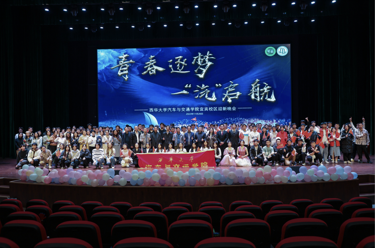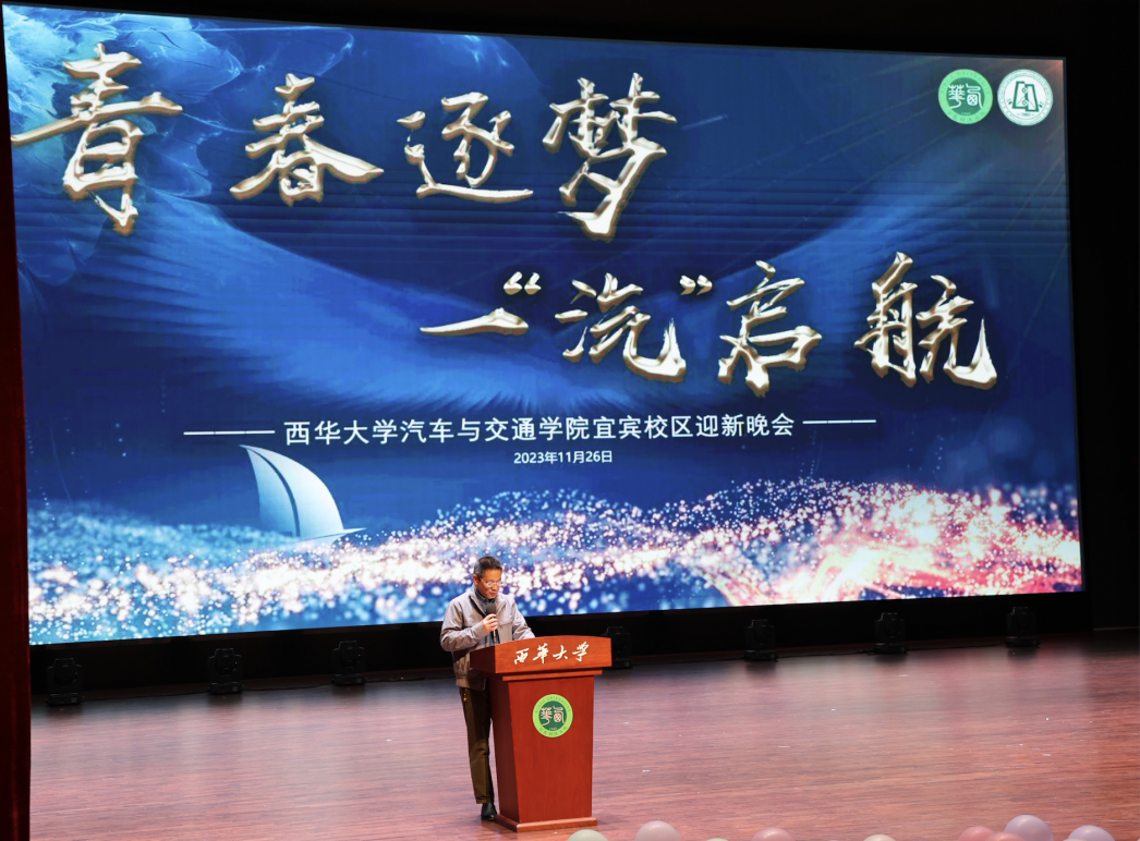 (学生通讯员:桂阳、曹睿)龙头山下,观斗山旁,奏响青春的乐章,共赴青春的盛会,11月26日晚,“青春逐梦,一‘汽’启航”——西华大学汽车与交通学院宜宾校区迎新晚会在观众和嘉宾的共同见证下拉开帷幕,现场热情洋溢,呈现出青春活力的欢乐氛围。与会嘉宾有汽车与交通学院党委书记周华,汽车与交通学院院长黎青松,宜宾校区党工委副书记、纪工委书记毕达平,西华大学党委学生工作部副部长、宜宾校区学生工作办公室主任杨万能,西华大学教务处副处长、宜宾校区教学工作办公室主任熊朝坤,汽车与交通学院党委副书记、纪委书记裴西宏,汽车与交通学院副院长何太碧,汽车与交通学院副院长孟忠伟,汽车与交通学院副处级专职组织员母希清,汽车与交通学院交通科学与工程系主任罗建,汽车与交通学院学生工作办公室主任孙小秋,汽车与交通学院团委书记雷为尧,各学院辅导员以及在宜学生的参加。
