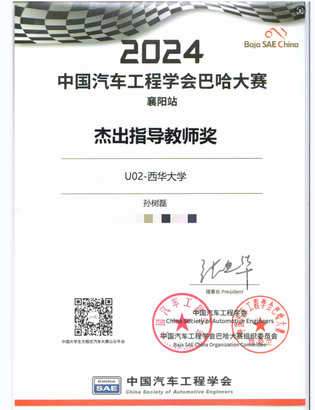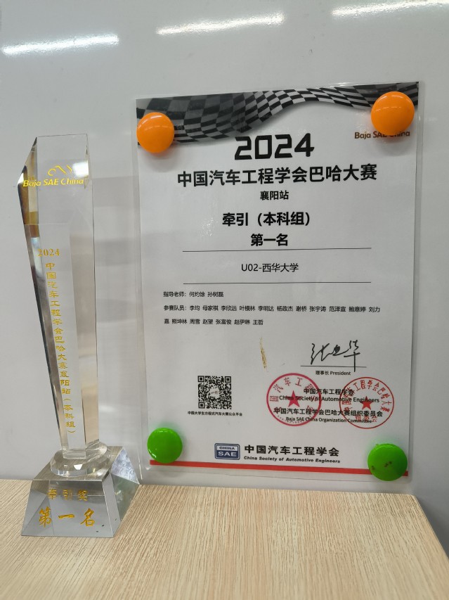 5月7日-11日,2024中国大学生方程式系列赛事巴哈大赛(襄阳站)在襄阳举行。来自吉林大学、武汉理工大学、哈尔滨工业大学等高校的58支车队参加了此次比赛。我校虎鲨车队U2参加了本科组比赛,总成绩第2名,操控性第1名,牵引第1名,单圈计时第2名,4小时耐久赛第4名,获得了巴哈大赛年度亚军。虎鲨车队U2是本科组唯一一个通过专项赛的车队,获得了总成绩一等奖。何灼馀、孙树磊老师获得杰出指导老师奖,全体参赛队员获得中国汽车工程学会颁发的见习工程师证。本次比赛充分体现出西华学子的吃苦耐劳、勇于进取的精神及赛车水平,为学校赢得了荣誉。