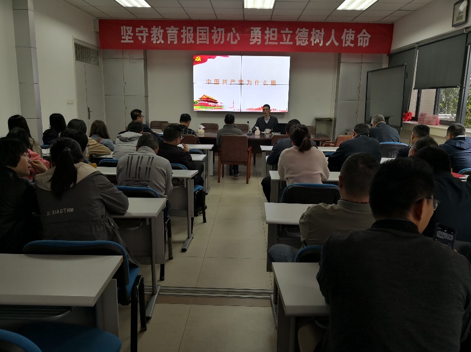 4月1日,汽车与交通学院在学院会议室召开全体教工党员和入党积极分子大会,部署和开展党史学习教育工作。学院党委书记周华领学了《中国共产党为什么“能”》,从中国共产党所具有的,有远大理想追求,有科学理论引领,有选贤任能机制,有严明纪律规矩,有自我革命精神,有强大领导能力的等一系列优秀特质出发,科学研究,深入解答了中国共产党为什么能带领中国人民取得巨大成功,实现中华民族从站起来、富起来到强起来的伟大飞跃,创造世界惊叹的“中国奇迹”。通过这一课题的学习,学院广大教工党员进一步深刻了解了中国共产党的优秀特质和光荣历史,进一步坚定了始终坚持中国共产党领导、实现中华民族伟大复兴的信心和决心。