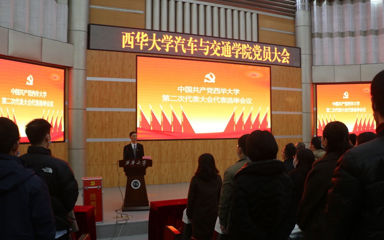 按照学校党委安排部署,12月02日下午3点,汽车与交通学院党员大会在校本部四教报告厅召开,宜宾分会场在四教106报告厅同步召开,选举出席中国共产党西华大学第二次代表大会代表。