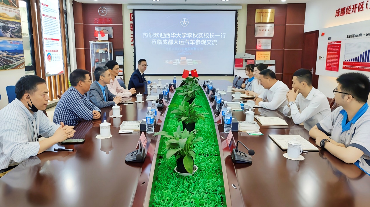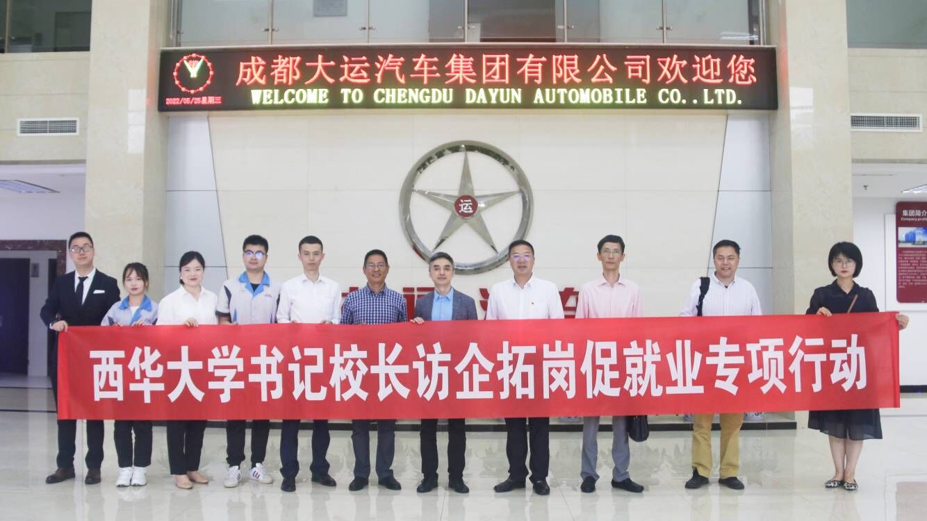 为进一步深化校企合作、推动毕业生实现更加充分、更高质量就业,5月25日上午,副校长李秋实带领汽车与交通学院党委书记周华、院长黎青松一行赴成都大运汽车集团有限公司开展“访企拓岗促就业”专项行动,同公司常务副总经理谢平、技术中心副总监满海涛、人力资源部主管林艳及校友代表座谈,了解企业生产经营及产品研发需求,并就人才培养、拓展就业、科研协作、研发装备开放共享等方面开展校企合作交流。