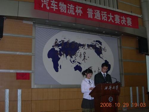 10月29日晚,由汽车学院物流管理专业主办的“物流杯”普通话大赛的决赛在四教报告厅成功举行。经过初赛的选拨,来自物流管理三个年级的11位选手在今晚争夺冠军头衔。大赛邀请了国家普通话测评员杨绍林、王蜀苏作为决赛的专业评委。出席现场的嘉宾有我院学生工作办公室主任朱惠斌、分团委书记李绍军以及物流管理辅导员王卓老师和陈倚伶老师。
