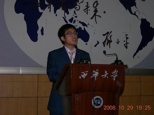 在全场观众的期待中普通话决赛开始了:首先是选手自由演讲由评委评出前五名。接着胜出者抽题绕口令由评委评出前三名。最后,没有入围前三名的选手进行文艺表演,入围者由大众评委投票决定冠亚季军。各位选手在台上各显身手,激情的演讲赢得阵阵掌声,流利的绕口令让观众叹为观止,没有入围的选手通过精彩的文艺表演赢得评委的褒奖,大众评委更是选手与观众的互动。最后,07级的黄海东夺得大赛冠军,07级的何丹荣获亚军,06级的王泳惠荣获季军,08级的段超荣获最佳才艺奖。