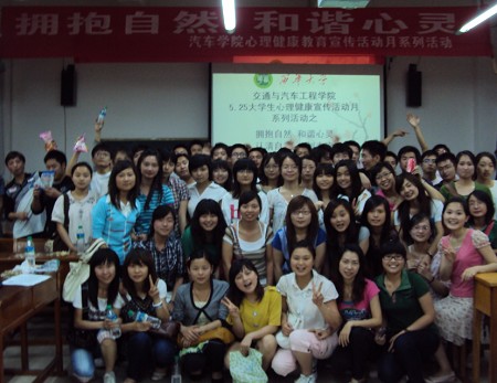 5月30日19:00,经过07物流党小组、班委、团支部半月的紧张筹备,一场以“拥抱自然 和谐心灵 认清自我 规划未来”为主题的“5.25”大学生心理健康宣传活动在5D101成功举行。本次活动由团支书何涛主持,物流管理专业的部分应届毕业生、辅导员朱惠斌老师和全体同学出席了本次活动,此外,08车辆党小组主要成员也到场观摩。