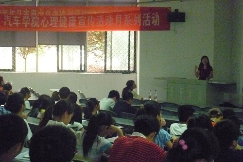 5月19日下午4:00,汽车学院在6B-102举办了心理委员培训讲座。本次培训是学院“放飞心灵,幸福启航—5.25大学生心理健康教育宣传活动月”系列活动之一,邀请了心理健康服务与研究中心王惠莹老师给全院的心理委员做了一场题为“幸福由心”的讲座。