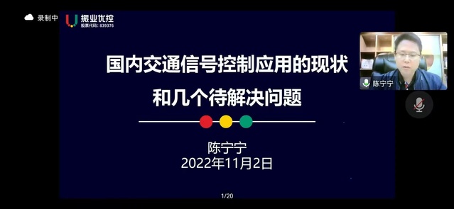 11月2日下午,汽车与交通学院开展的“交通学科前沿专题系列讲座”第二期邀请了高级工程师、中山大学校外硕士生导师、广东振业优控科技股份有限公司CEO陈宁宁作学术汇报。报告主题为“国内交通信号控制应用的现状和几个待解决问题”,唐立副教授主持本次会议,汽车与交通学院近两百位师生通过线上方式参与交流和讨论。