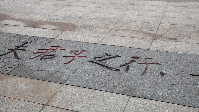 一曼中学地面的名言警句 中国青年网通讯员林紫阳供图