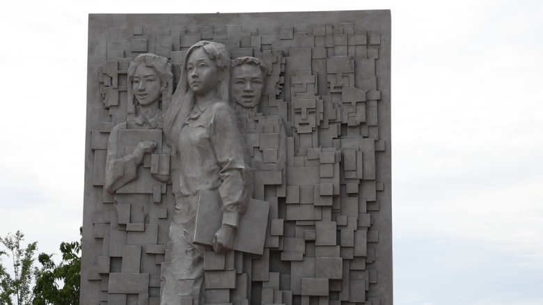 一曼中学正门广场上的雕塑 中国青年网通讯员林紫阳供图