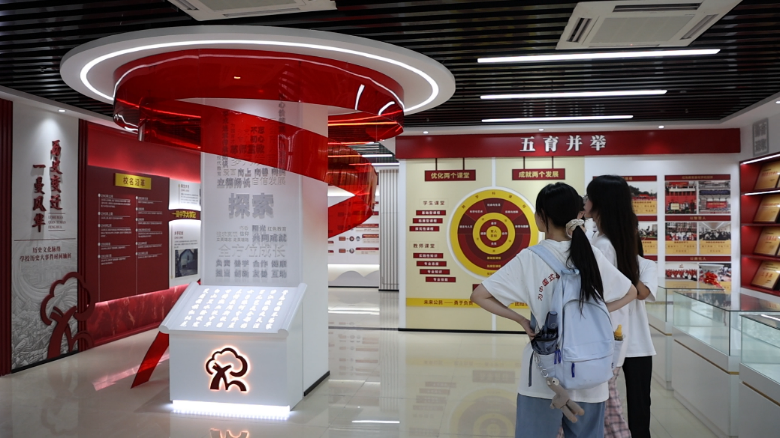 在老师的带领下,实践团成员们来到了一曼中学的校史馆。一曼中学校史馆是校园内极具特色和文化底蕴的地方,以“一脉相承,弦歌不辍”为主题,分为时代变迁一曼风华、五育并举砥砺开阔、多元发展开启新程三大板块。实践团成员在参观校史馆的过程中了解到,一曼中学建校之初原名为宜宾县立初级中学第一分校,而后为秉承一曼精神、再续辉煌,于2019年正式改名为“一曼中学”。