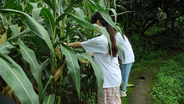 7月16日早上8点,实践团在当地居民的带领下到达玉米地,帮助居民掰玉米,搬玉米。随着正午的临近,太阳愈发毒辣,汗水随着脖颈涔涔而下,成员们不禁感叹“谁知盘中餐,粒粒皆辛苦”。