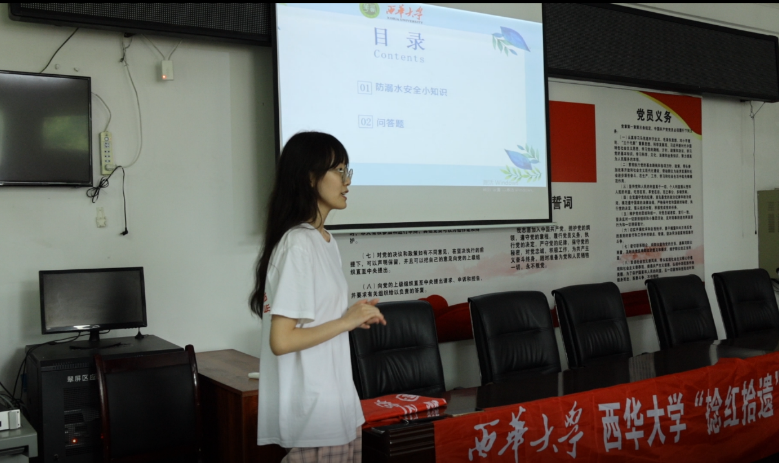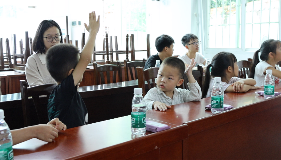 实践团成员庞文晨曦围绕如何防溺水、如何施救、如何自救等多个方面进行宣讲,并以举手抢答问题的方式加强了小朋友们暑期防溺水意识。