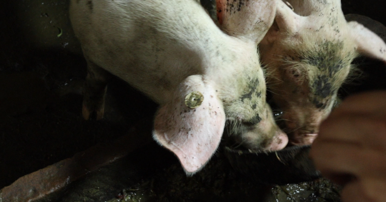 家养猪正在吃成员们投喂的饲料 中国青年网通讯员刘月供图