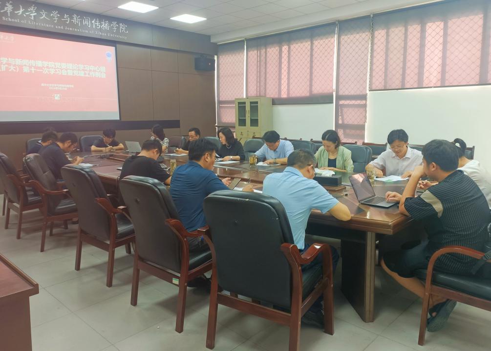 9月26日上午10点,文学与新闻传播学院于6A108会议室召开党委理论学习中心组(扩大)第十一次学习会暨党建工作例会。全体院领导出席会议,学院党委委员、专职组织员、党政办主任及各党支部书记参会。会议由学院党委书记张雯欣主持。