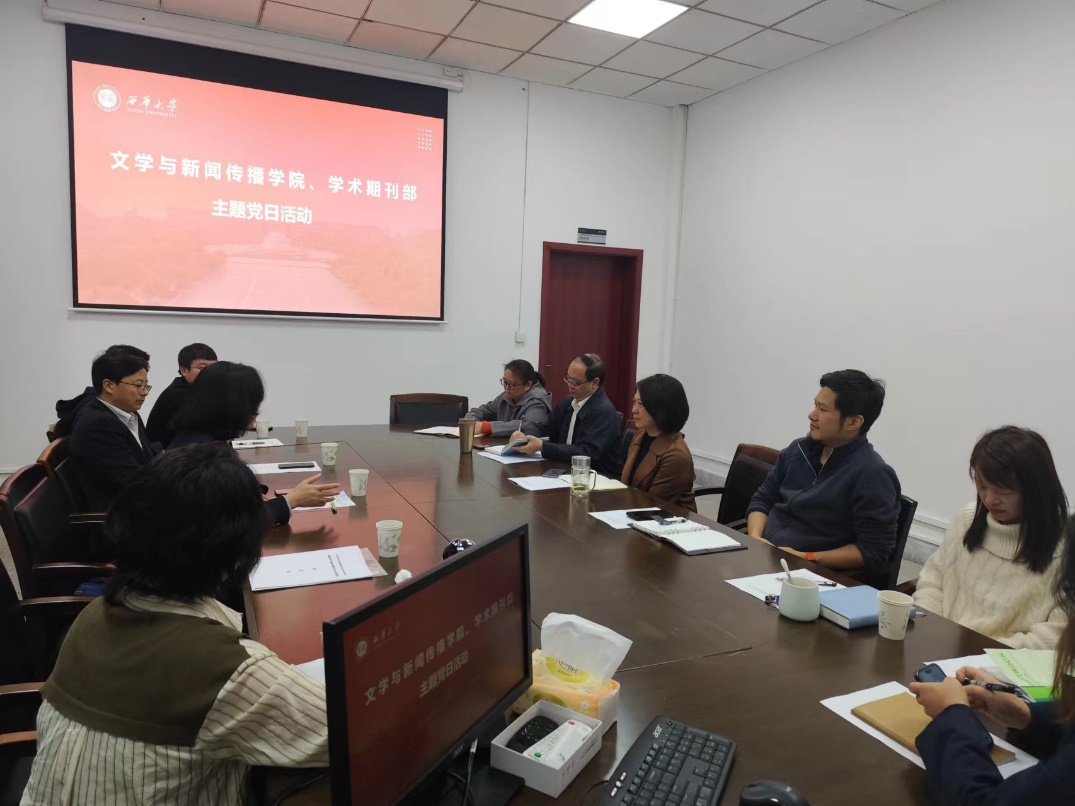 10月25日,文学与新闻传播学院与学术期刊部联合举办了主题党日活动,旨在深入学习党的理论知识,加强党性修养,促进学术交流与合作,共同推动党的建设与事业发展。