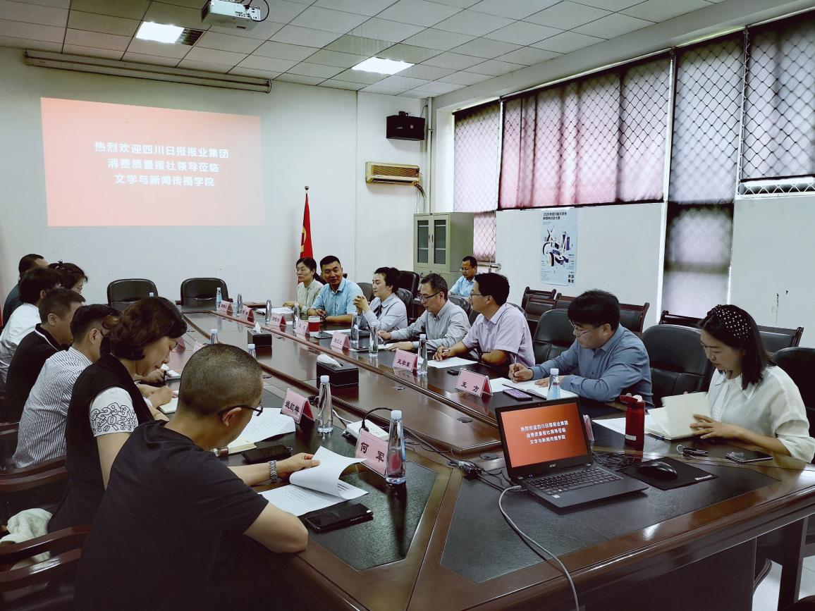 5月20日上午,四川日报报业集团党委委员、副总编辑、四川日报社副总编辑廖翥,消费质量报社委会主任、总编辑(总经理)王清洪等一行到访我院,在学院会议室就校媒合作事宜与我院进行洽谈磋商,院党委书记王莉、院长谢应光、副院长王学东、传媒系主任陈彧、党政办主任王方、西华大学质量发展研究院副院长刘晓彬等参加洽谈会。