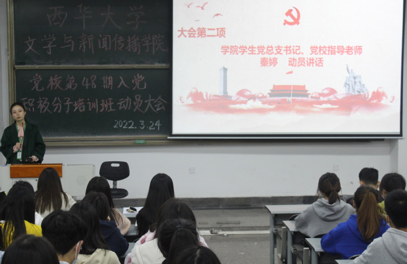 3月24日中午12点,文学与新闻传播学院于6B-108召开党校第48期入党积极分子培训班动员大会。参加动员大会的有学院党校指导老师、各学生党支部书记以及本期入党积极分子培训班的全体学生干部和学员。