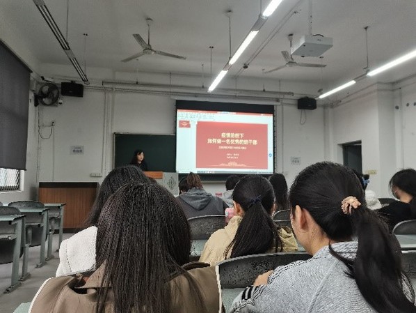 为落实立德树人根本任务,从严从实、科学精准推进疫情防控工作,3月24日下午,“疫情防控下如何做一名优秀的学生班干部”主题班委会在6C-120教室顺利召开。20级全体学生班干部和辅导员廖秀美老师参加了会议。