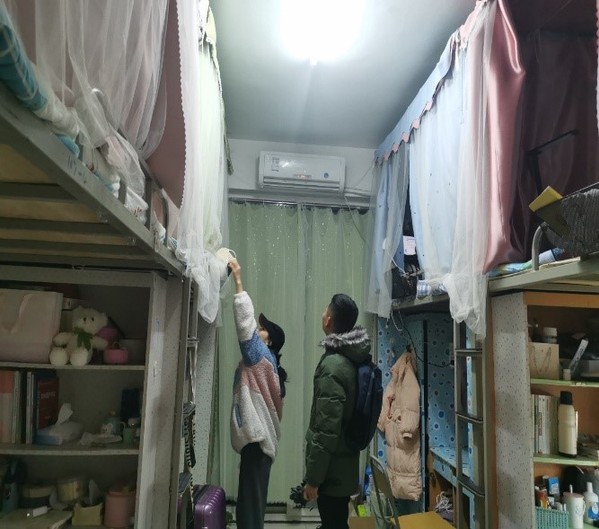 走访中,辅导员们从安全与文明两个方面出发。在与同学们的交谈中,紧紧围绕防控疫情,提醒同学们不要私自出校、随时随地戴好口罩等;接着,以违规学生(私自使用违规电器,私拉乱接等)为例督促学生安全用电,文明住宿,教导学生注意个人行为,端正自己的思想。最后,辅导员告诫同学们一定要注意寝室和个人卫生,做到文明寝室,文明个人,文明大家。此外,此次走访寝室,辅导员们还对返校同学们在返校后的生活感想进行了收集。通过走访,辅导员了解到部分同学对于返校后的宿舍有些失望,或多或少出现问题,如:希望热水进德馨寝室等。对于这些问题,辅导员们第一时间找人处理解决,并认真听取了已返校同学的诉求,表示对同学们的需求会合理安排,会尽最大努力为同学们服好务,同学们纷纷表示理解。