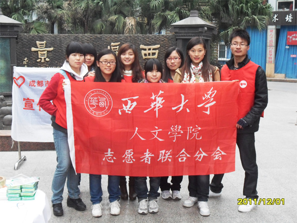 11月30日上午,人文学院学生志愿者来到校外红光镇的西区御景社区,为12月1日的世界艾滋病日开展了系列防艾宣传活动。