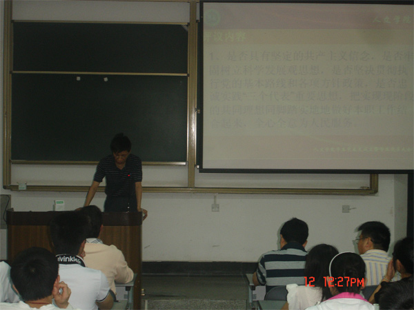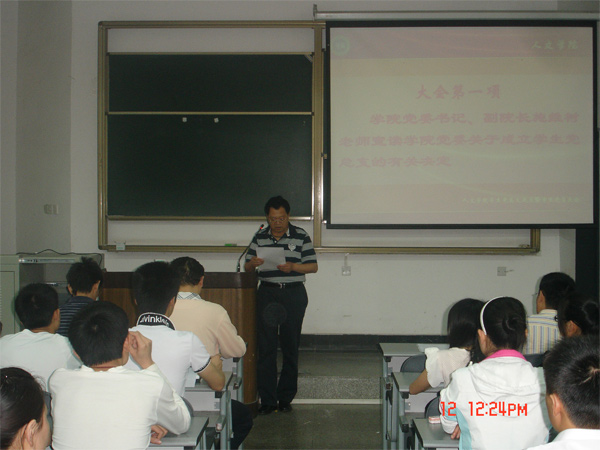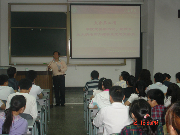 大会由党委副书记、副院长王大清主持。首先,党委书记施维树宣读了人文学院党委关于成立学生党总支的决定,任命徐攀为党总支书记,徐薇、廖秀美为党总支副书记。随后,王大清向大会介绍了学生党总支委员。学院党委委员、副院长冯永泰传达了学校党委关于开展民主评议党员的有关文件精神。最后,学生党总支书记徐攀介绍了总支的基本情况,对开展民主评议学生党员工作的阶段安排作了说明和要求,并表示,人文学院学生党总支将在学校和学院党委的正确领导下,力争更加扎实有效地推进基层学生党组织的各项工作的开展。