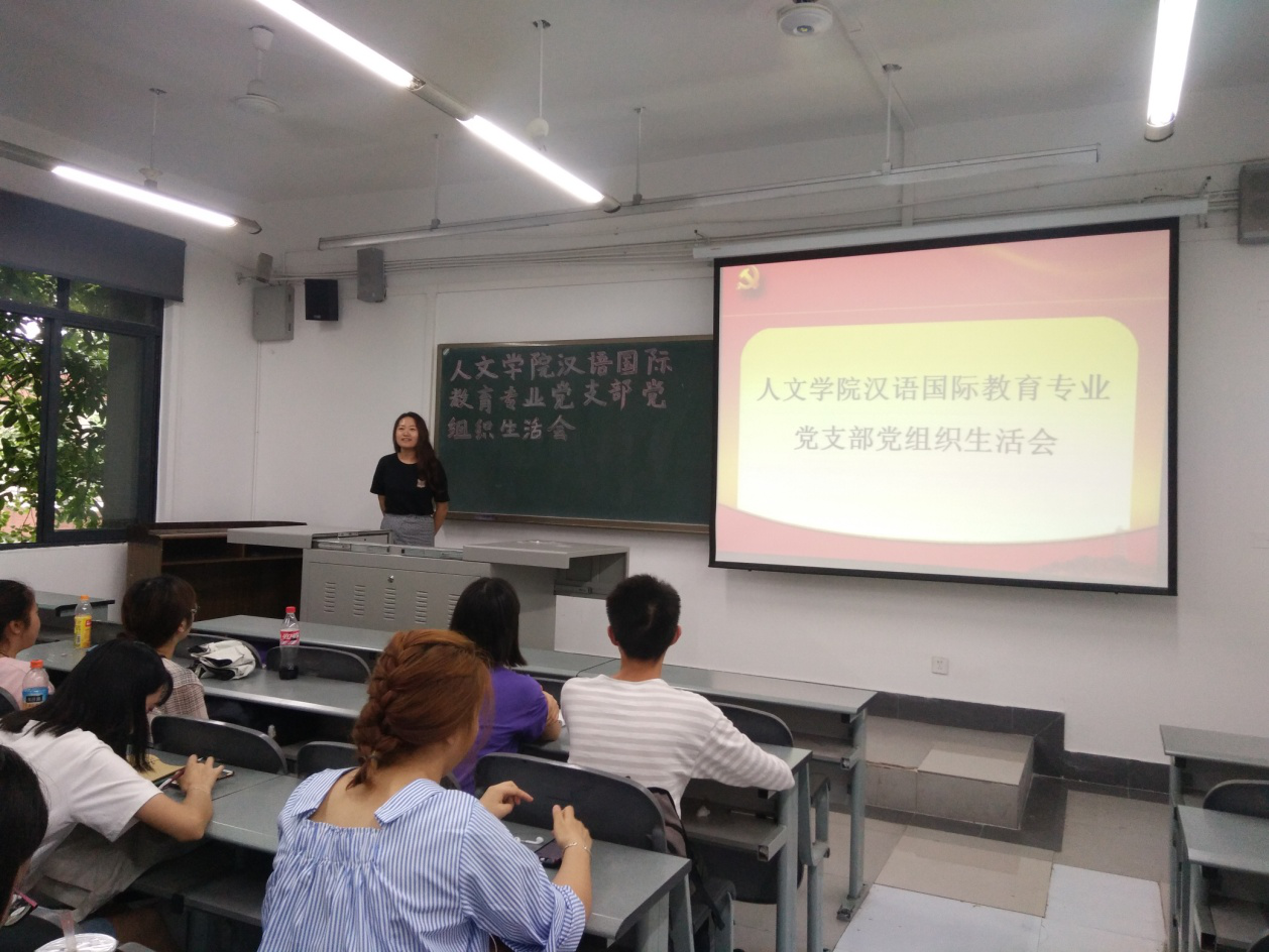 为了加强党员的党性修养,保证党员队伍的先进性,人文学院汉语国际教育专业党支部于6月12日晚在6c-206召开专题组织生活会,学习《中华人民共和国宪法修正案》,汉语国际教育专业党支部全体党员参加组织生活会,刘菁琳同志主持会议。