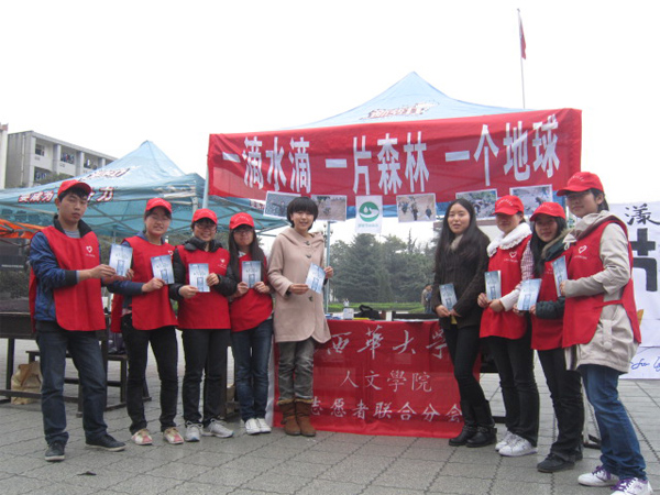 3月22日,西华大学青年志愿者联合会人文学院分会在明德广场举行了“一滴清水、一片绿地、一个地球”为主题的节约用水宣传活动。