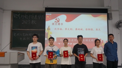 随后,刘益丰老师为第50期党校优秀班长吴颜妍、优秀组长李文钊、黄绍尧、杨彩玲颁发荣誉证书,郭忠林书记为第51期党校班长沈峻弘颁发聘书、刘益丰老师为第51期党校组长沈书瑶、李文钊、蒋雨城、张靳骁、焦天颁发聘书。