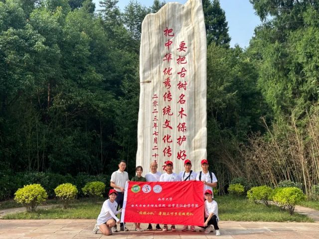 在翠云廊,学院代表团沿古蜀道徒步,近距离观察古树名木,了解古道的生态价值与保护措施,沿途清理古道上的垃圾,进行植被维护,保护绿水青山。