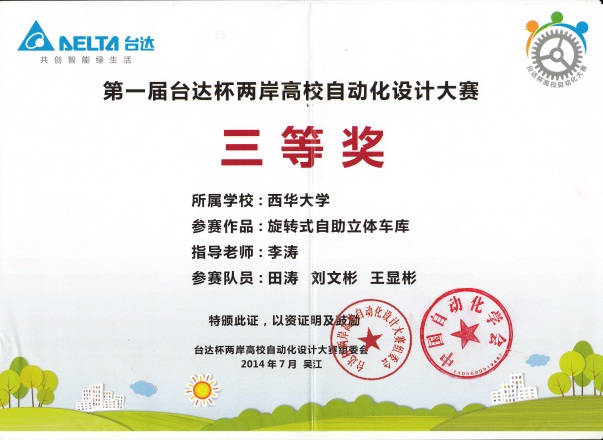 2014年第一届台达杯两岸高校自动化设计大赛三等奖