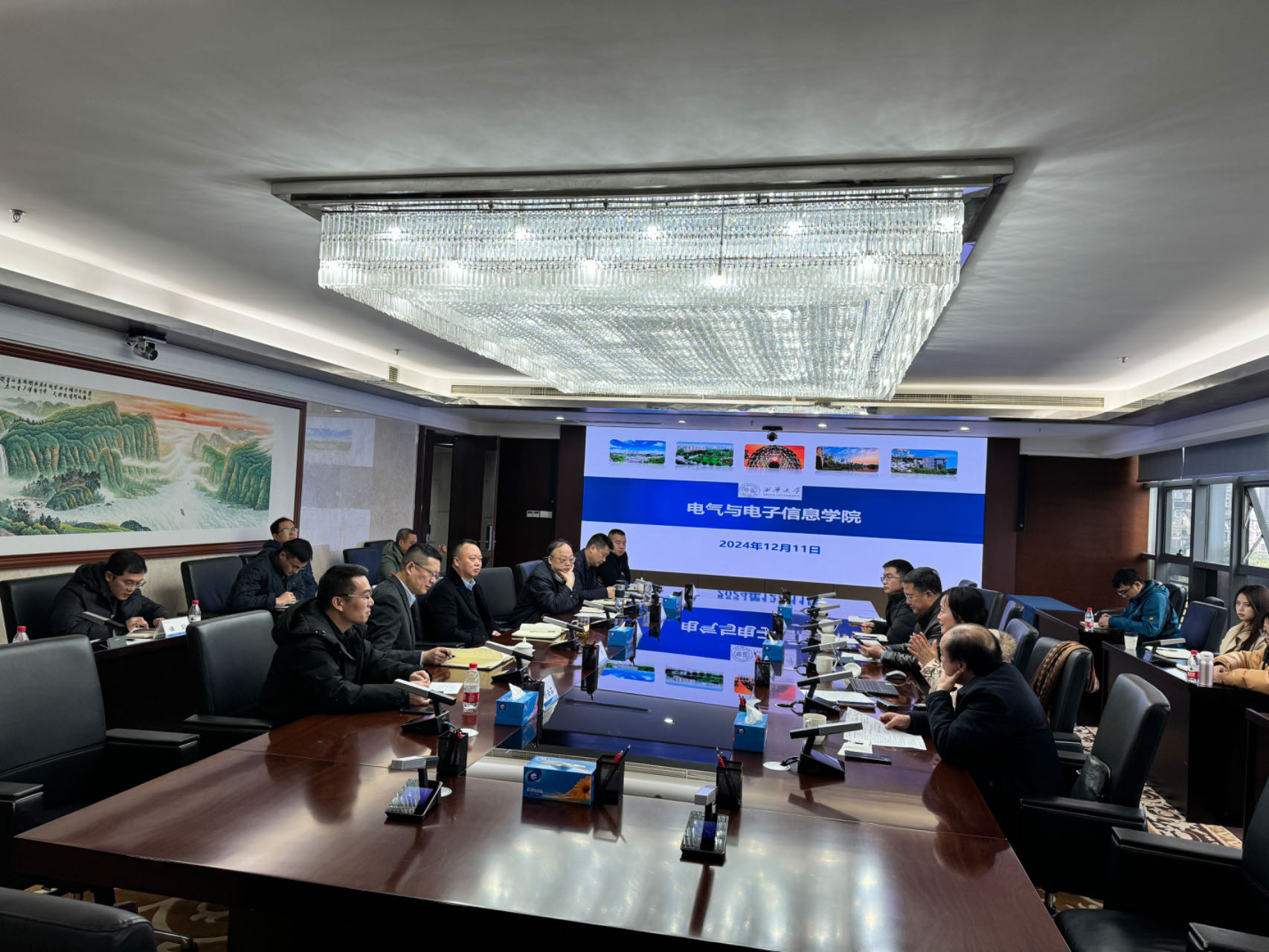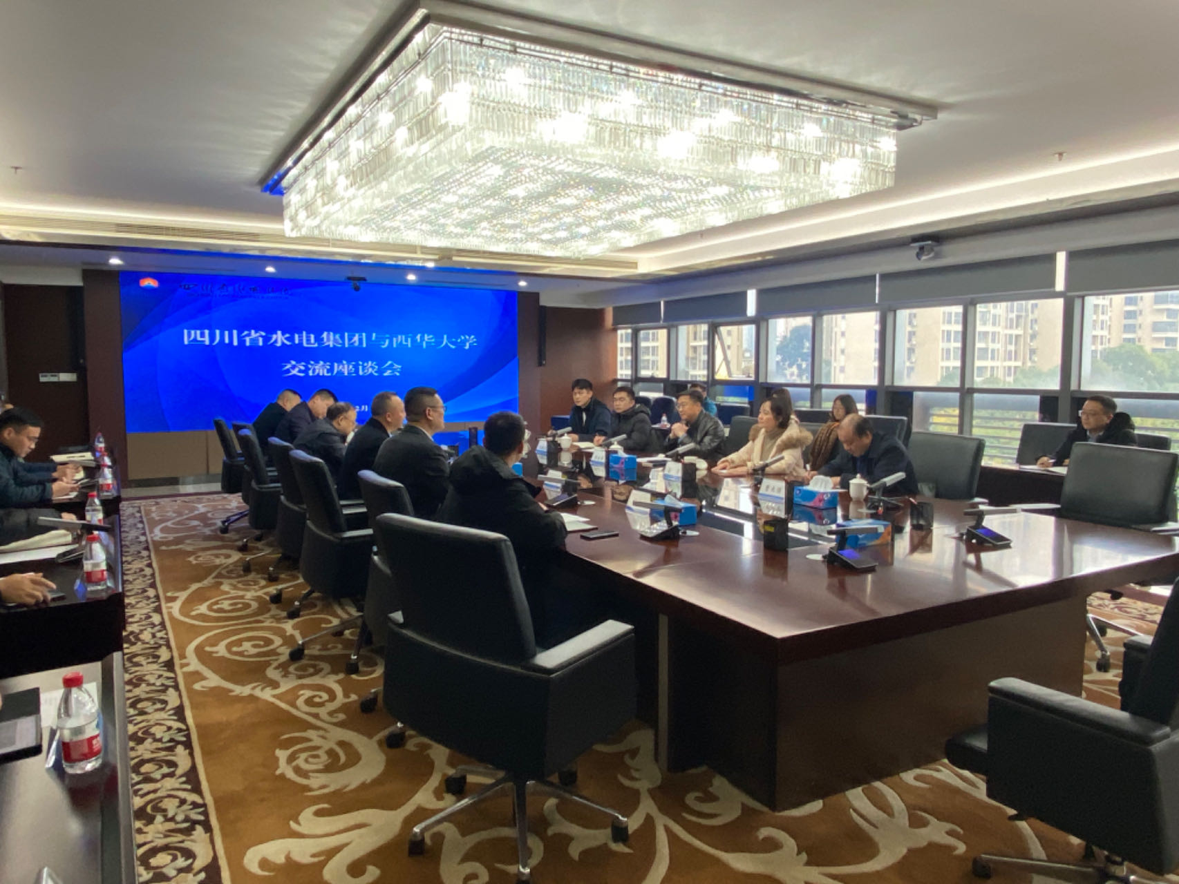 2024年12月11日下午,西华大学副校长郎方年、电气与电子信息学院院长雷霞、副院长阎铁生、曹太强教授等一行赴四川省水电集团交流学习。四川省水电集团党委副书记、副董事长、总经理刘均剑,副总经理吴毅,总经理助理、四川能投综合能源公司董事长袁彬,安全总监黄双庆,四川能投综合能源公司总经理宋健林及集团业务骨干参加了此次交流研讨会议。会议由刘均剑总经理主持。