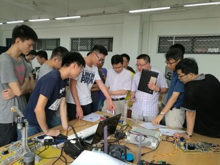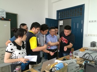 本次比赛共有来自电气与电子信息学院、机械工程学院、计算机与软件工程学院、理学院和西华学院各年级各专业共计102名同学34组报名参赛,其中规定类题目22组,自选类题目12组,最终遴选出20件作品参加测评。评审会正式开始后,参赛选手分别上台,通过视频、PPT等方式向评委详细介绍了参赛作品的工作原理、操作方法以及创新性特色。全部参赛选手介绍完自己的作品后,评委与同学一起来到6A213进行作品测试。评委针对作品的性能、特点等进行了提问,提出相关改进建议,并通过测试进行公正评分与相关指导。其中一批别具特色的优秀作品脱颖而出,如:音频信号采集分析装置,程控直流电子负载,电子血压计,基于Zigbee的无线医疗呼叫系统等。同学们注重实际,通过模拟、仿真、调试把对未来生活的构想付诸于实践,展现出了当代大学生用科技改变未来的积极态度。