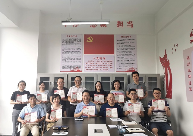 随后,支部书记龚翠艳为支部党员赠送政治生日贺卡,支部成员一起过政治生日。支部中党龄最长的董秀成同志作为领誓人,带领全体与会党员重温入党誓词,重温入党初心。
