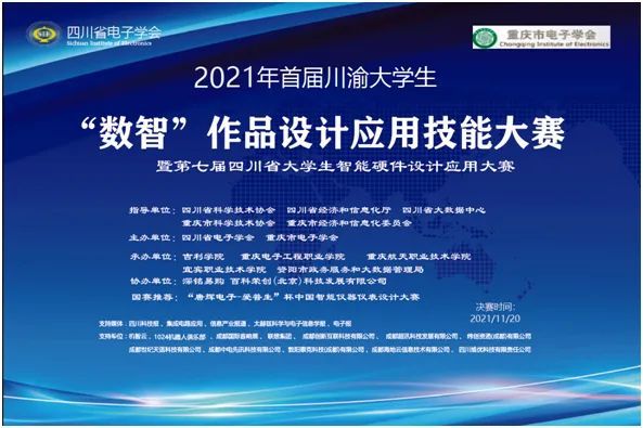 11月20日,首届川渝大学生“数智”作品设计应用技能大赛暨第七届四川省大学生智能硬件设计应用大赛圆满举办。本次大赛由四川省电子学会联合重庆市电子学会主办。此次活动大赛得到了四川省科学技术协会、四川省经济和信息化厅、四川省大数据中心、重庆市科学技术协会、重庆市经济和信息化委员会的指导。在川渝电子信息产业联盟促成下形成的具有创新孵化和技能展现相结合的一项竞赛活动,川渝大学生同台竞技,相互交流相互学习,有利于成渝经济圈建设的人才储备。