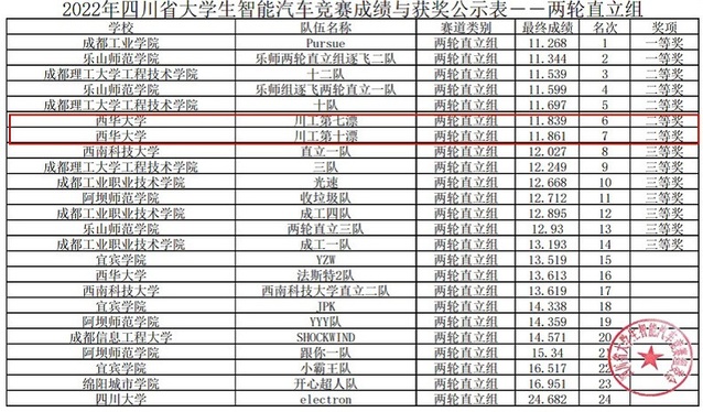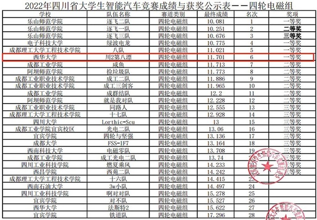 另悉,本届竞赛由四川省教育厅主办,乐山师范学院承办,成都逐飞科技有限公司协办。设有单车拉力组、两轮直立组、四轮摄像头组、多车协同组、室外越野组、四轮电磁组和无线充电组等。为体现公平竞赛原则,大赛组委会下设赛事仲裁委员会、大赛巡视督查小组到各高校全程监督比赛。参赛队伍共180余支队伍,分别来自四川大学、电子科技大学、西南交通大学、西南科技大学、西华大学、成都信息工程大学等25所高校。