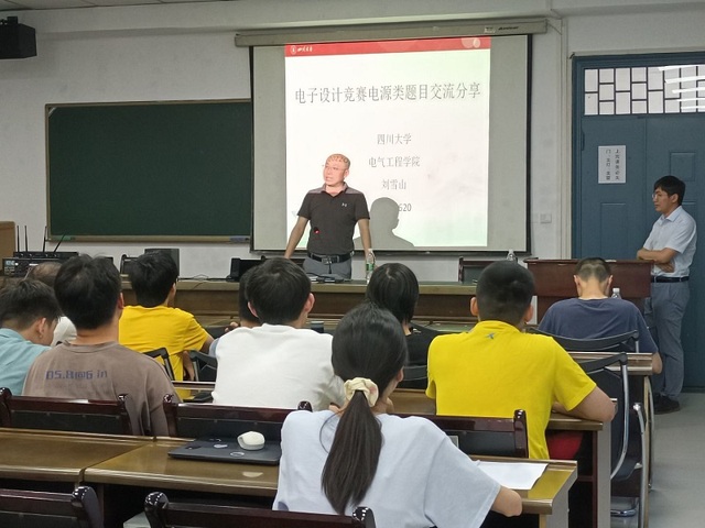 6月28日下午,电气与电子信息学院邀请四川大学电气工程学院副教授刘雪山在6A338为我院学生作电子设计竞赛电源类题目交流分享。电气学院党委副书记郭忠林、实验室指导教师吕承参加,电气学院部分学生到场学习。