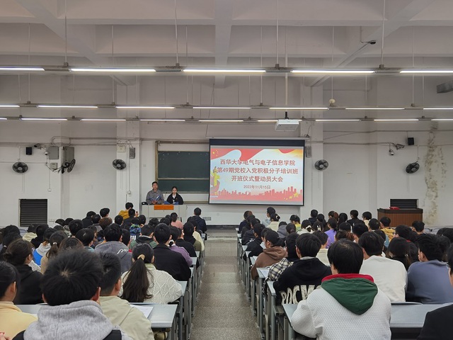 11月15日中午,电气与电子信息学院第49期党校入党积极分子培训班开班仪式暨动员大会在6B308举行。出席本次会议有电气与电子信息学院党委副书记郭忠林、学工办主任刘钊、党校指导教师刘益丰。第48期党校优秀班长、优秀组长及第49期党校全体学员到场。