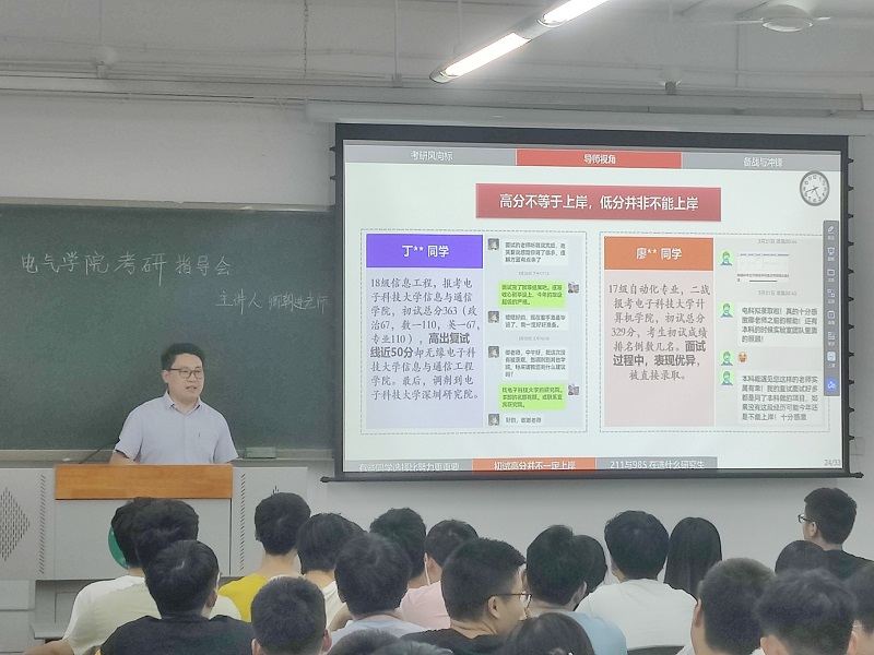 5月9日晚,电气与电子信息学院在6C226召开考研专业指导会。电气学院卿朝进教授担任主讲,从考研风向、导师视角和学院考研历史经纬度等多方展开详细阐述。2019级和2020级信息工程、通信工程及自动化等三个专业有考研计划的同学到场聆听。