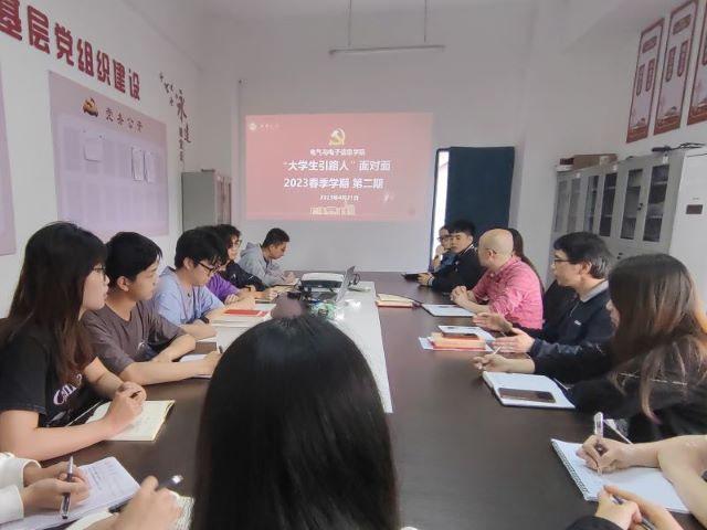 4月21日下午,电气与电子信息学院第二期“大学生引路人”面对面活动在6A320进行。电气学院党委副书记郭忠林、教学副院长陈永强、教学办主任王宏、辅导员陈莎莎、刘益丰出席会议,电气学院2021级各班代表参会。