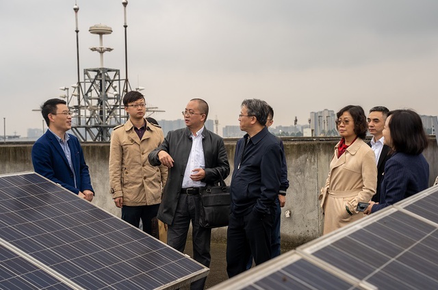 在雷霞的带领下,考察组先后来到6教A区天台、三楼、二楼和一楼参观考察工程中心,由学院专业实验中心主任孙章为考察团进行主要讲解,重点介绍了学院及其共建单位在微电网相关研究方向取得的代表性成果。