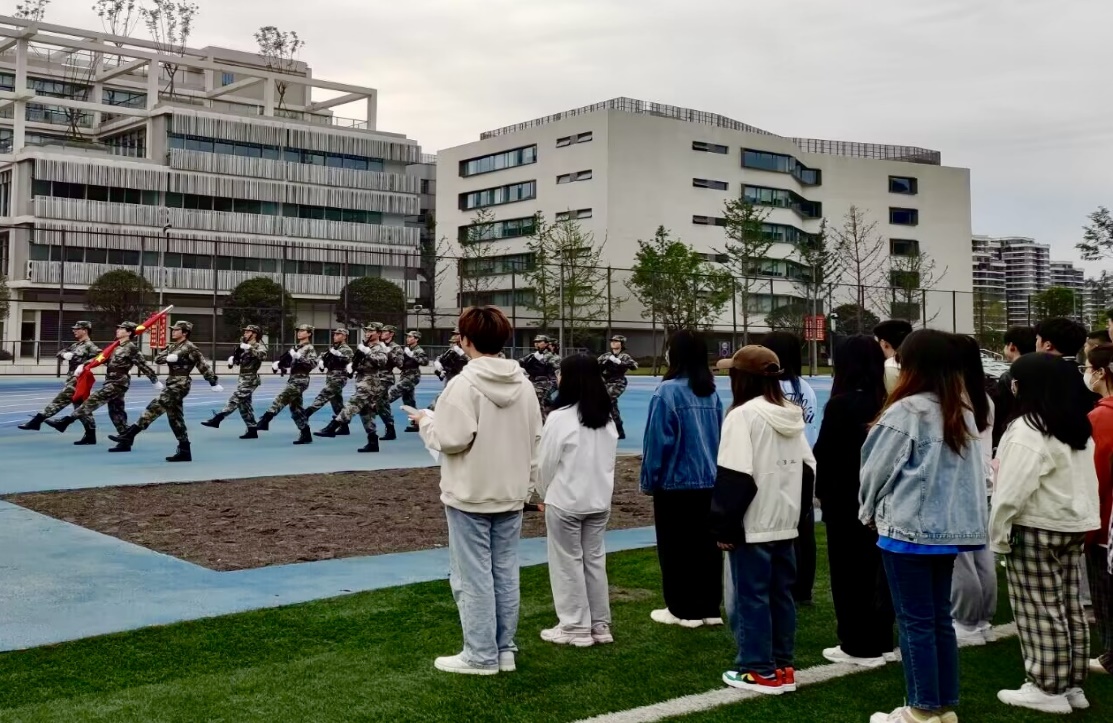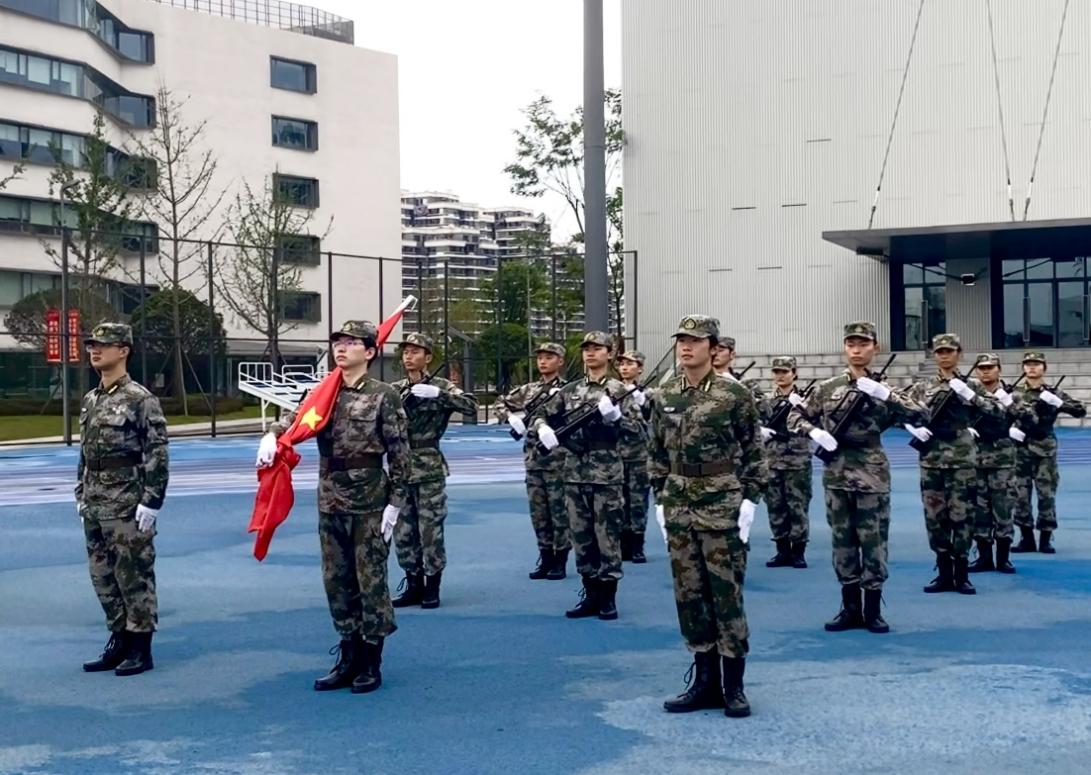 上午六点半,全体学生准备就位。7点主持人宣布升旗仪式正式开始,国防特勤部旗手们志气昂扬,迈着铿锵的步伐,护送国旗走向升旗台。