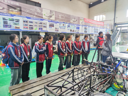 抵达后,在机械工程学院志愿者的带领下,同学们有序参观学校现代农业装备研究院和汽车实验中心。现代农业装备研究院和汽车实验中心有关负责人详细讲述了我校现代农业装备和汽车实验中心的历史、发展,成果和突破的国家课题,鼓励同学们通过现场实操现代农业装备、观摩前沿燃料电池和赛车来加深理解,同学们领悟到工业制造精湛的工艺,科技创新无限的魅力和国家对前端科学人才的深切渴望。