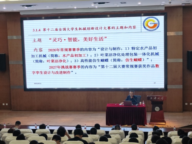 王晶教授介绍了机械创新设计大赛的历届开展情况,大赛自创办以来,其主题始终着眼于机械工程发展的最前沿,一路见证并引领机械工程领域的变革。针对第十二届大赛主题,王晶教授对第十二届大赛主题和内容做了深度解析,详细介绍了大赛的流程、时间节点以及注意事项,并详细解读了“常规赛”和“挑战赛”双赛制的创新设计。在场师生就机械创新设计大赛中遇到的问题与王晶教授进行了深入交流。